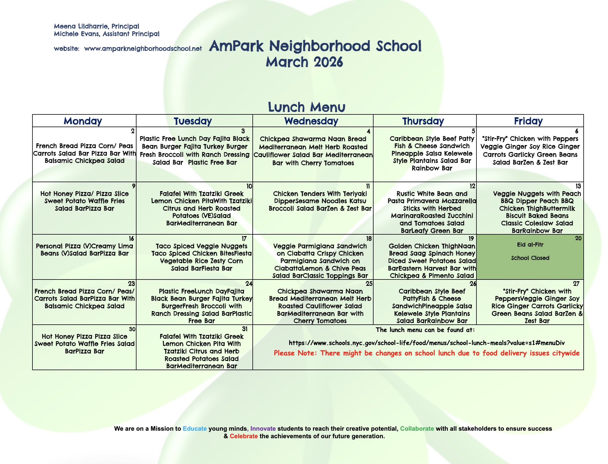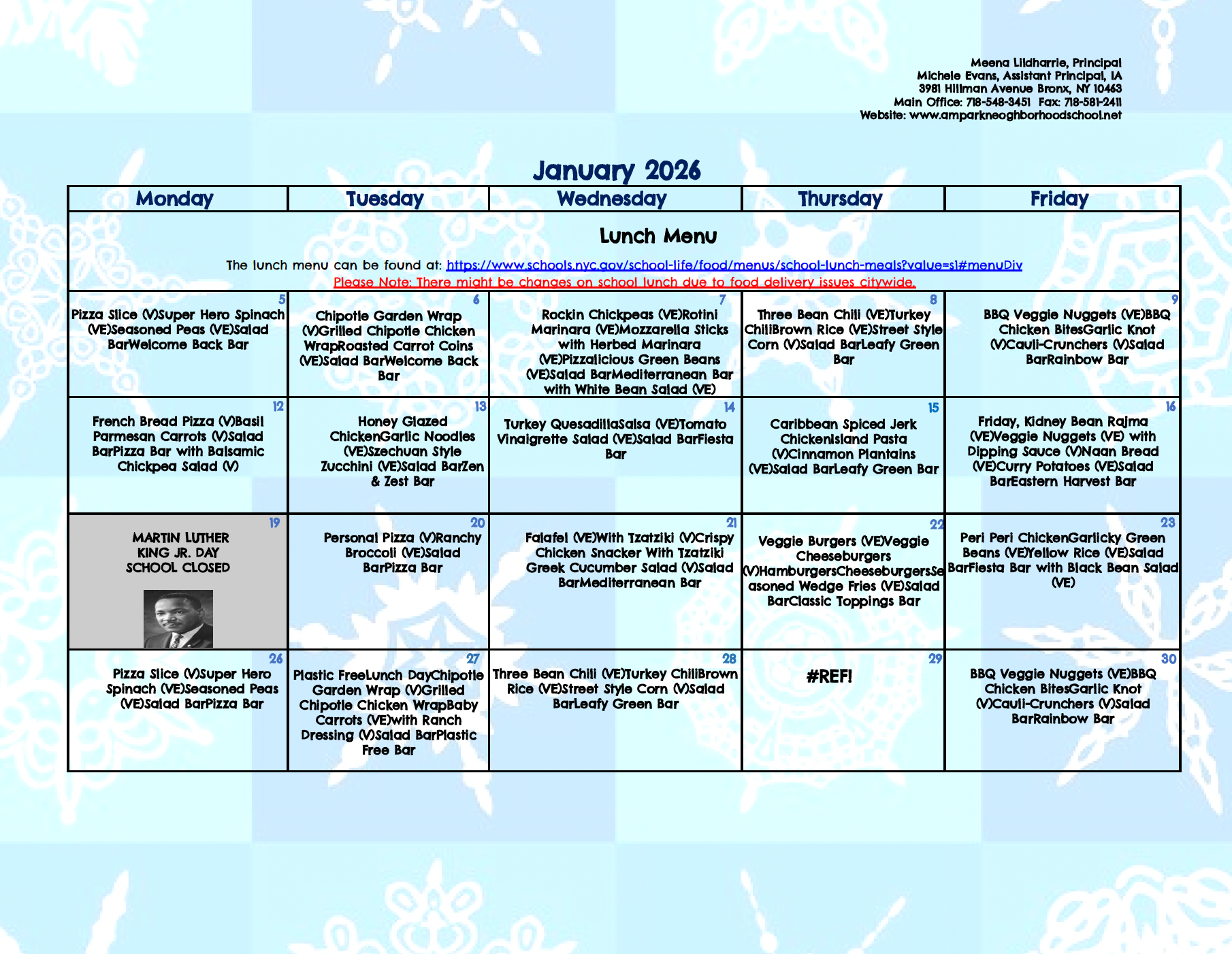 Please Note: There might be changes on school lunch due to food delivery issues citywide.